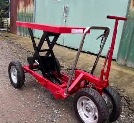 Xe nâng mặt bàn chế bánh lớn là loại xe nâng mặt bàn chế lại bánh xe di chuyển lớn hơn, dùng cho khách di chuyển nền đất khách nhà vườn, di chuyển nền không bằng phẳng.