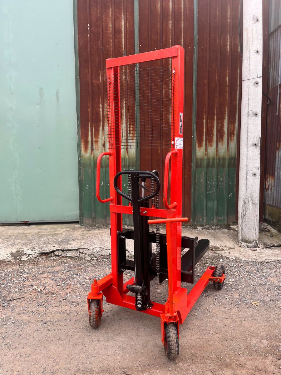 Xe nâng tay cao cơ tải 1 tấn chế bánh lớn, thêm tay kéo là phương án khá thực tế khi cần di chuyển hàng nặng trên nền gồ ghề, kho xưởng rộng hoặc ngoài trời.