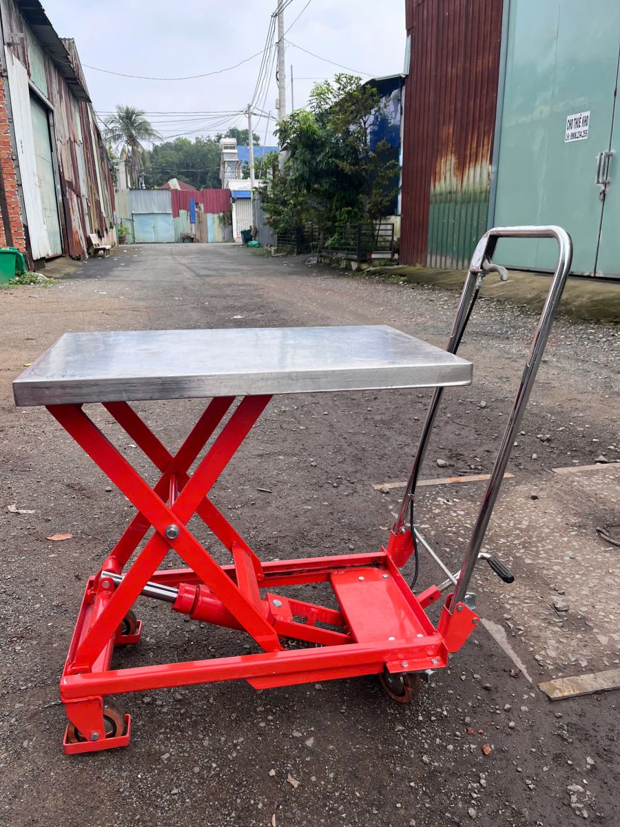 Xe nâng mặt bàn ốp inox tải 150kg nhỏ gọn